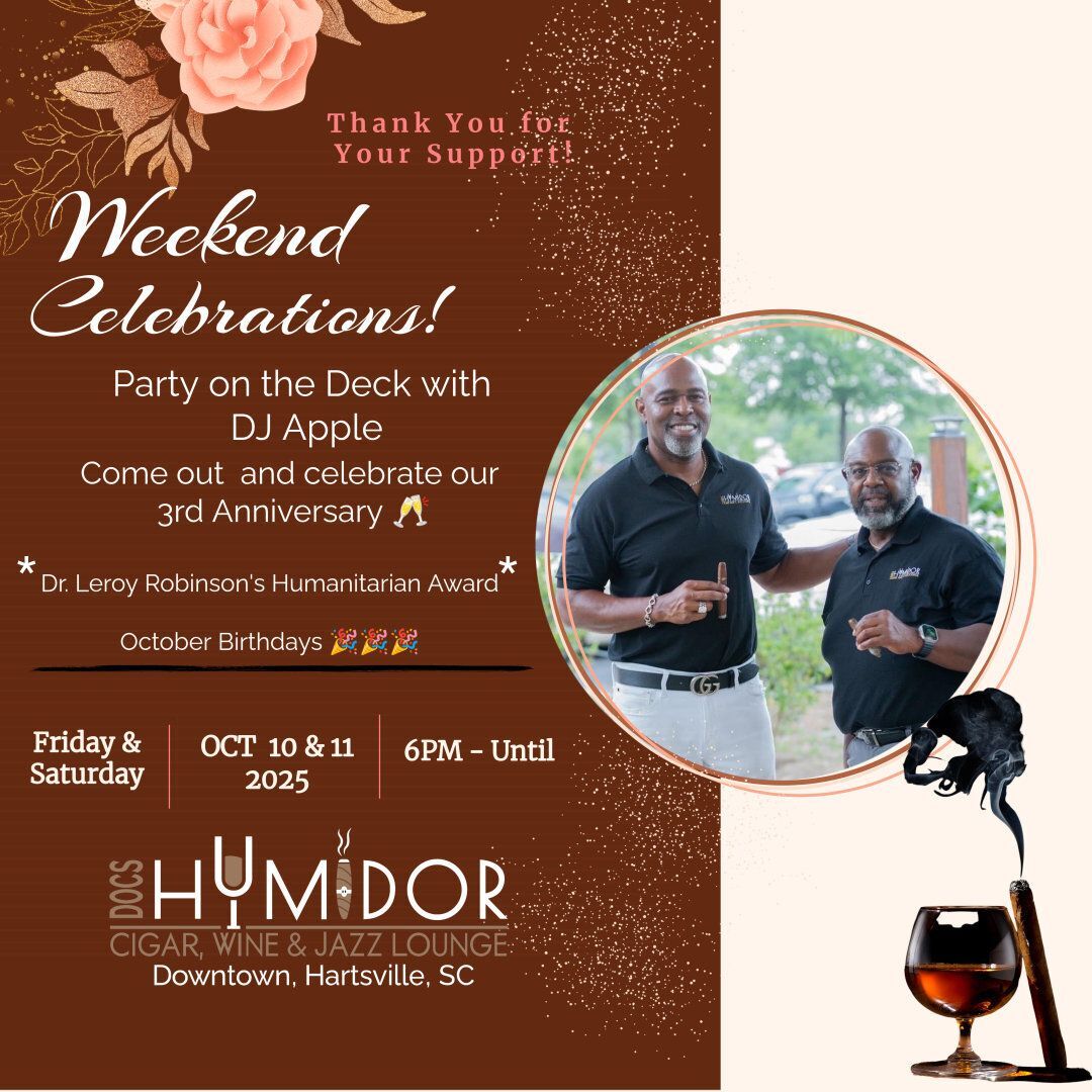 Come help us celebrate this weekend! Buy three get one free anything all weekend! Good times in a safe classy environment! Beautiful downtown Hartsville, South Carolina!!