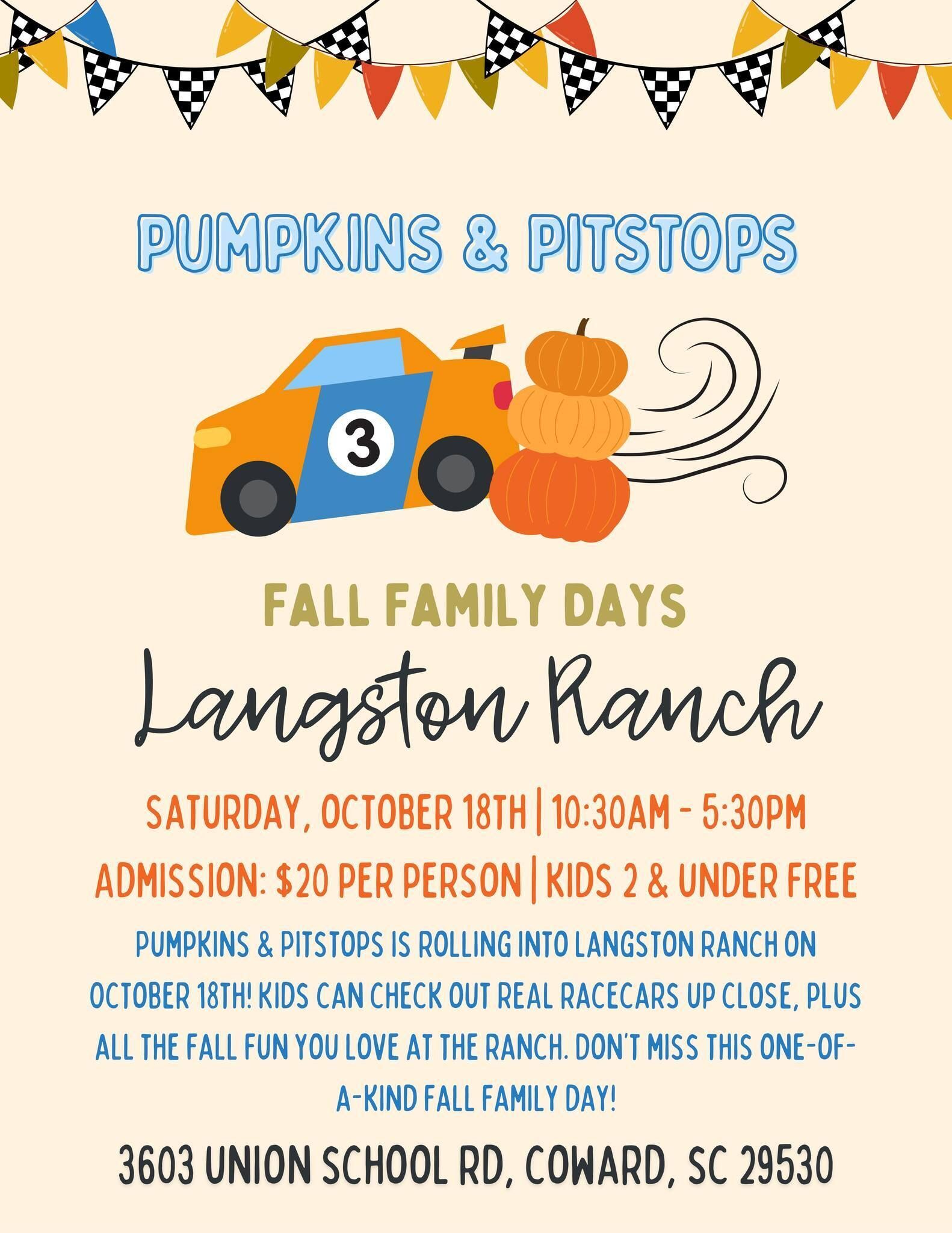 Pumpkins & Pitstops is rolling into Langston Ranch on October 18th! Kids can check out REAL racecars up close, plus all the fall fun you love at the ranch. Don’t miss this one-of-a-kind fall family day!