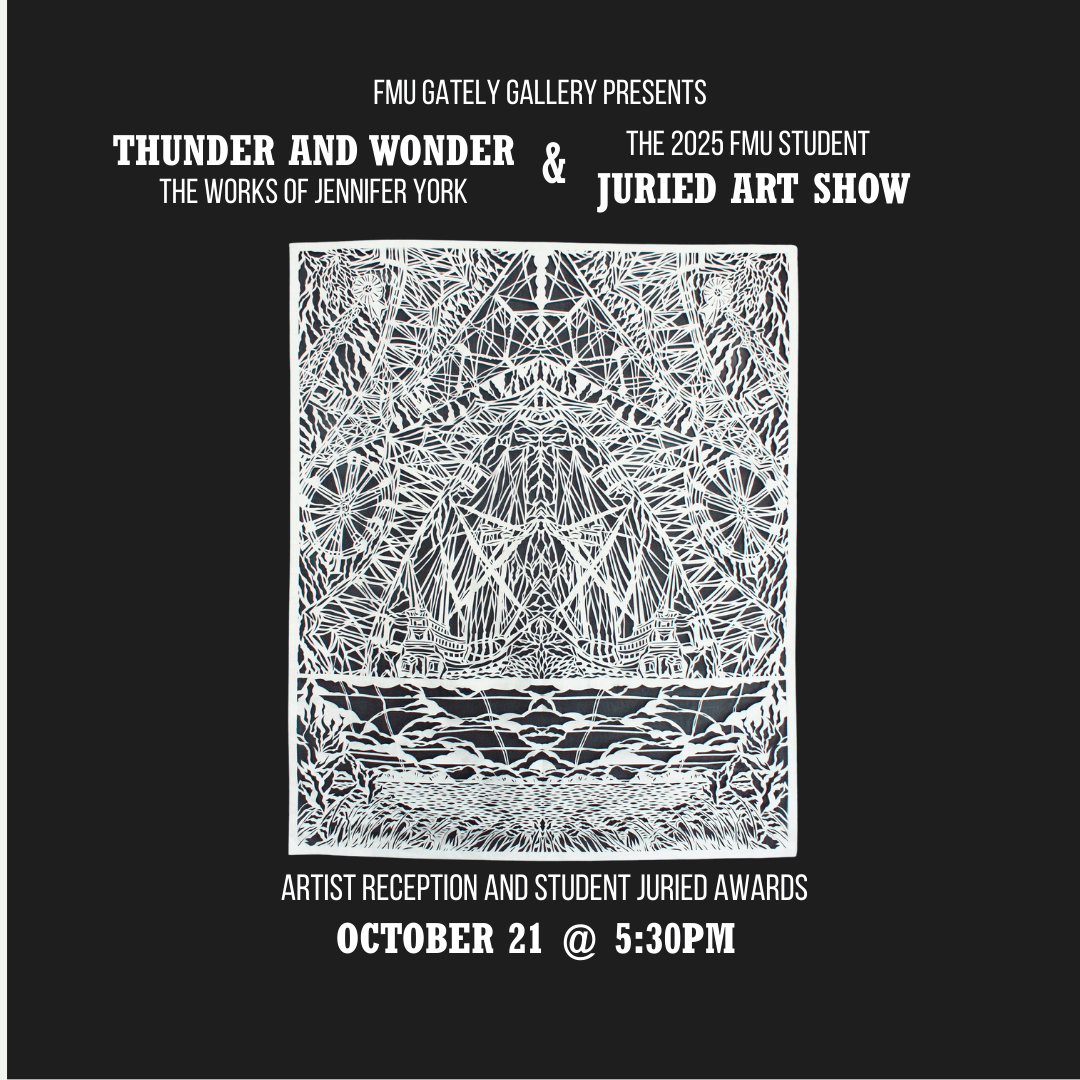 The exhibition opens with a joint reception on October 21 at 5:30 p.m., celebrating both Thunder and Wonder and the 2025 FMU Student Juried Art Show, which will run concurrently. This year’s student show is especially notable, as York herself serves as juror, bringing her expertise and unique artistic perspective to the selection of student works.