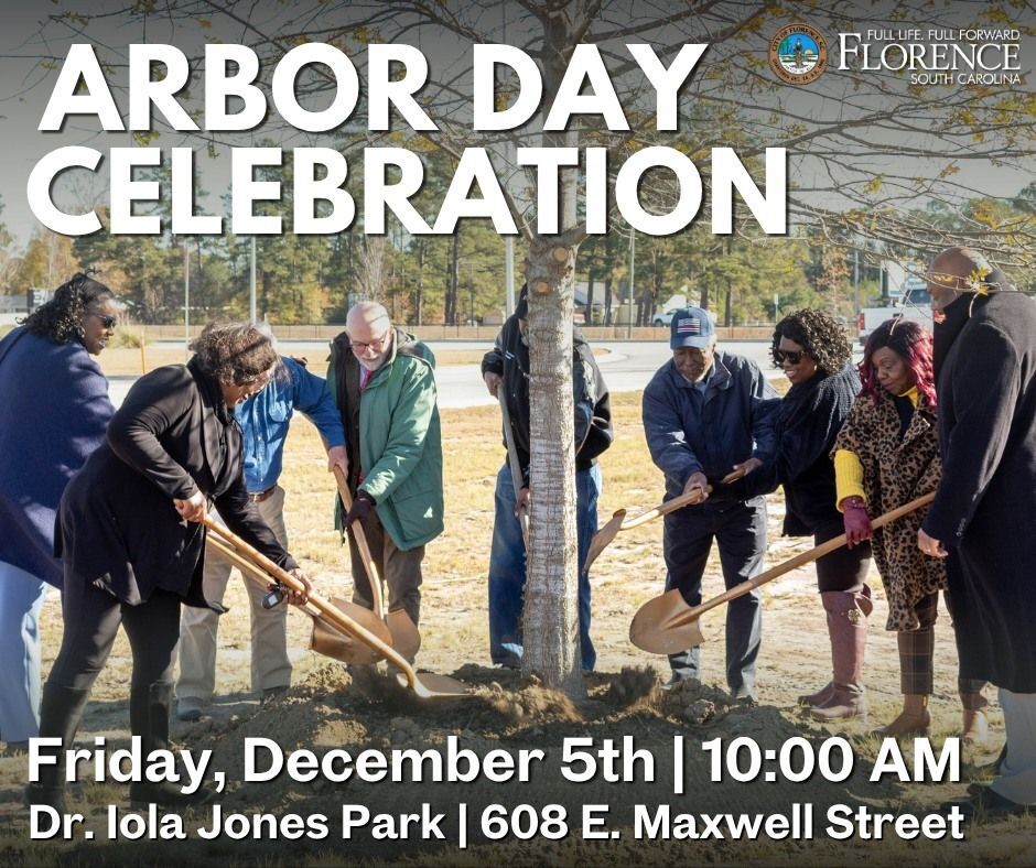 The City of Florence will hold its annual Arbor Day Observance on Friday, December 5, 2025, at 10:00 am at Dr. Iola Jones Park located at 608 E. Maxwell Street.