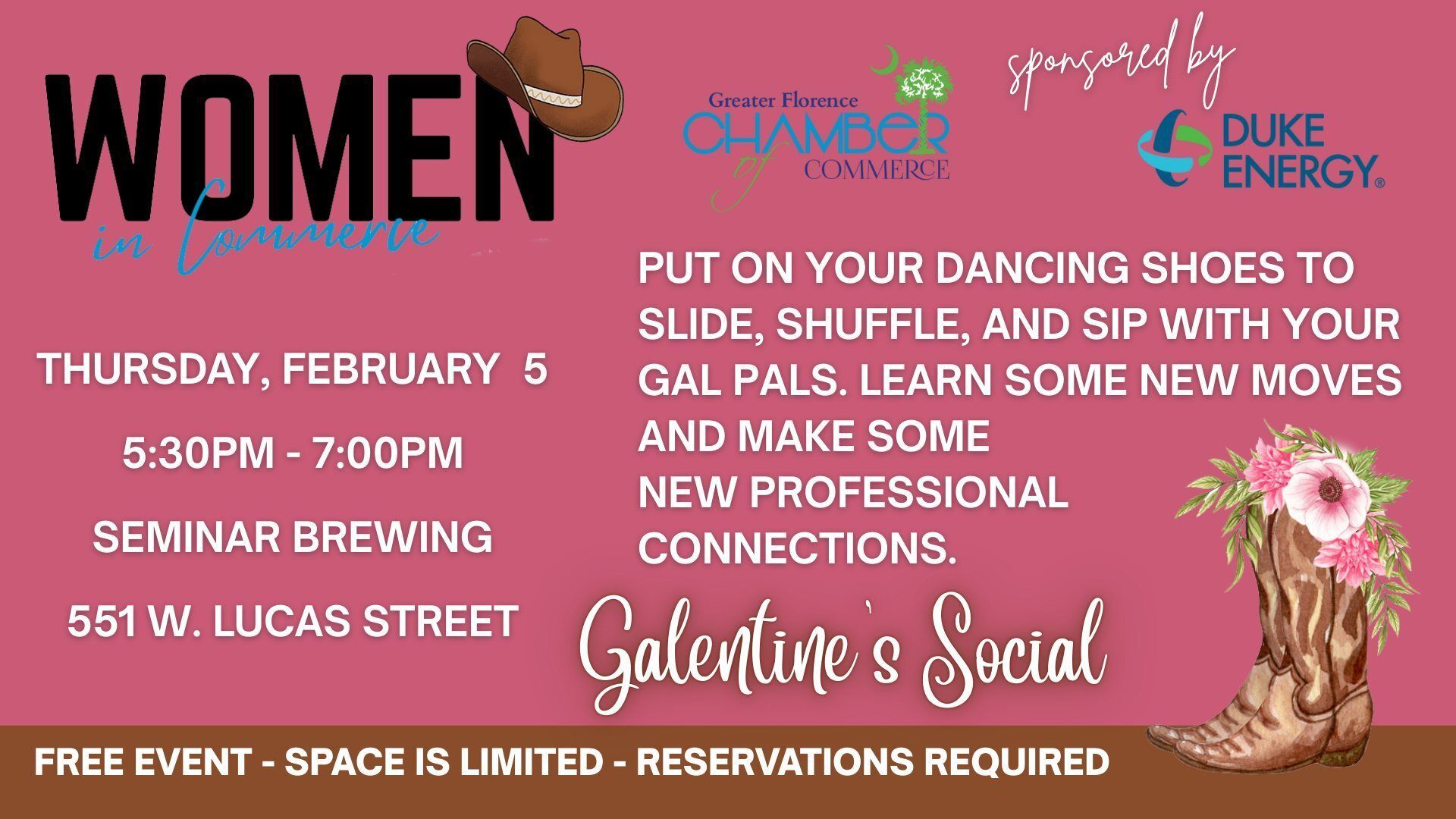 The Chamber will again host the Women In Commerce Social at Seminar Brewing on Thursday, February 5th from 5:30pm - 7:00pm.