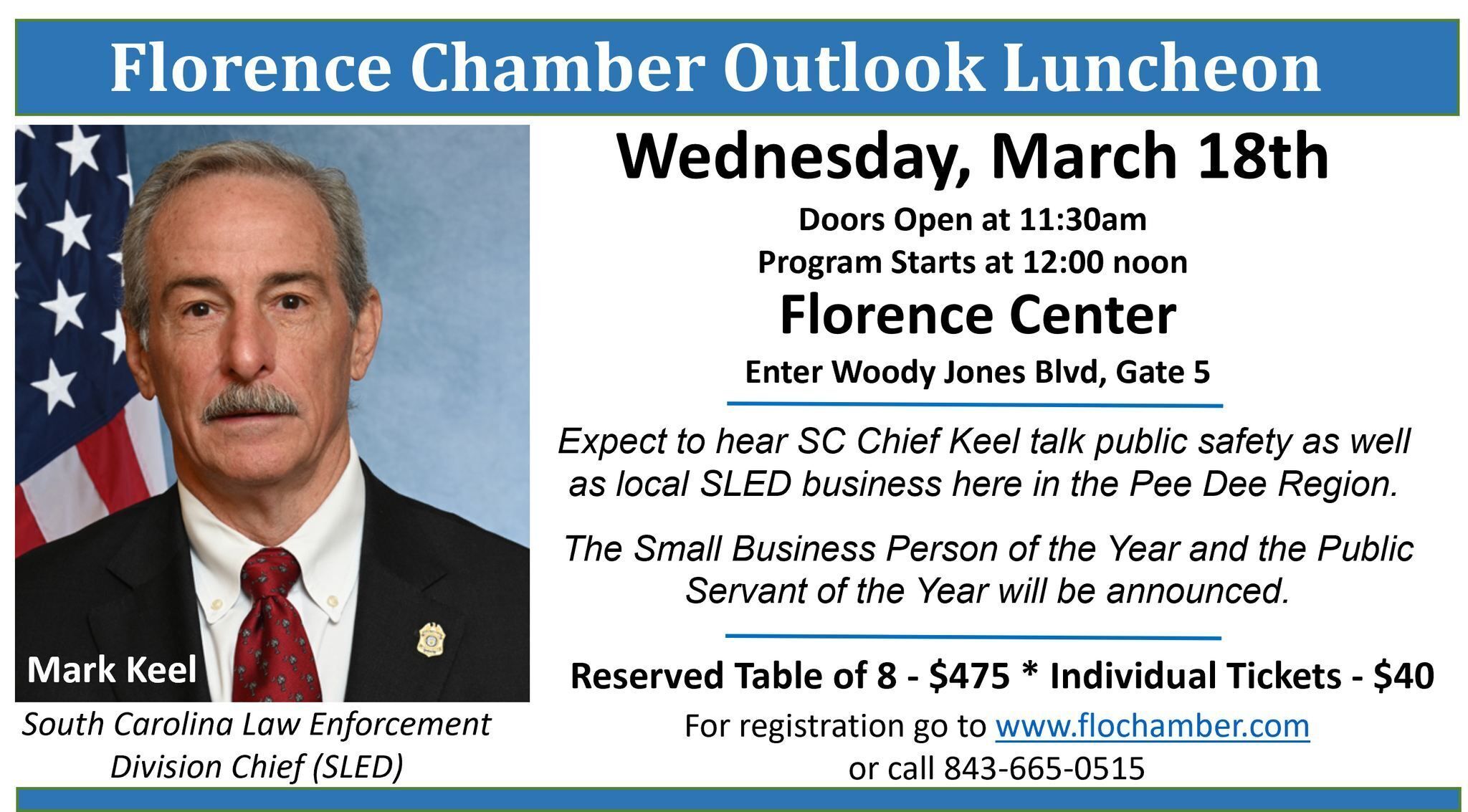The Greater Florence Chamber of Commerce will hold its Annual Outlook Luncheon on Wednesday, March 18th at Florence Center.