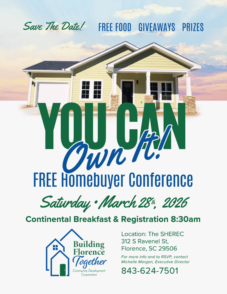 Don’t miss the Homebuyer Conference hosted by the Building Florence Together Community Development Corporation on Saturday, March 28, 2026! Enjoy free food, giveaways, and more.